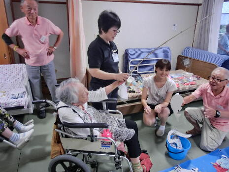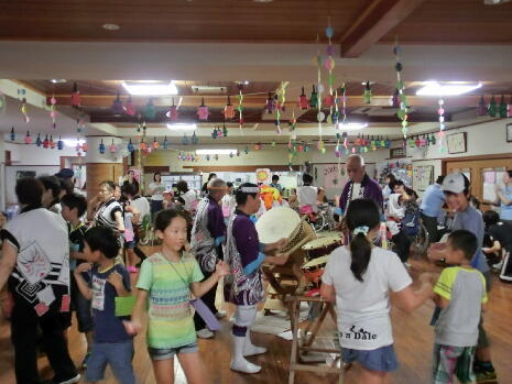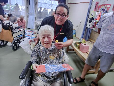 ご利用者と職員、地域の皆様が交流できる1年に1回の大イベントです。例年、飯田地区社協のボランティアの皆様、家族会の皆様、山原S型デイさくら会の皆様、職員の家族にご協力いただき、とても盛大に開催されます。特に地元山原の方々には、さくら会をはじめ、山原かっぽれ会、子供会の皆様にも参加していただき、お祭りを盛り上げていただいています。普段、足を運ぶことがない老人ホームかもしれませんが、こういった機会に地元の方々に老人ホームってどんなところか、知っていただくことができ、また、ご利用者の皆様も地域の方々と交流でき、とてもいい時間が流れます。