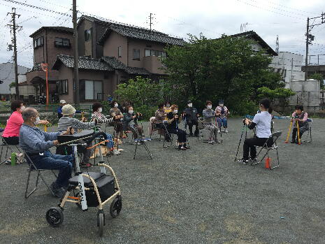 飯田地区社協の皆様と飯田地区自治会の皆様とも協議をさせて頂き、3密にならず感染予防を徹底したうえで公園を使用させていただき、30分と短い時間ではありますが、ポールを使った体操を行ないました。5月は11会場で延べ212名の方が参加、6月は11会場で延べ182名の方が参加されました。