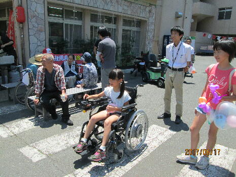 玄関ピロティ付近では、静岡市で餃子チャンピオンに輝いた「椿家(つばきハウス)」様の餃子販売、バルーンアート職人様のご指導によるバルーンアート体験、ファミリーマート下野店様のご協力によるファミチキ、アメリカンドッグ販売、いきいきセンターあすなろ(和茶屋)による作り物販売、さらには福祉用具業者(介護デザイン ライム様、セリオ様)による福祉用具体験コーナーが開催され大いに賑わいました!